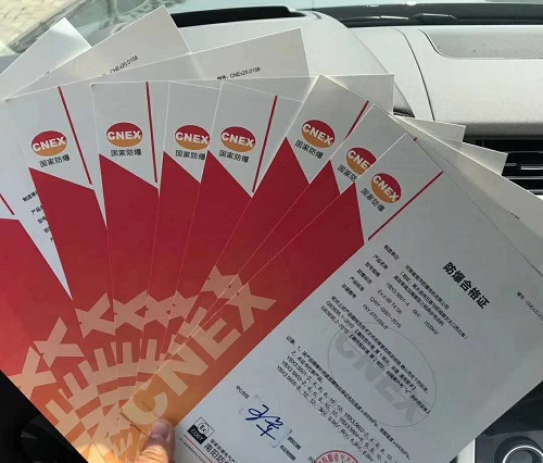由國家認可的檢驗機構頒發的用以證明樣機或試樣及其技術文件符合有關標準中的一種或幾種防爆型式要求的證件。