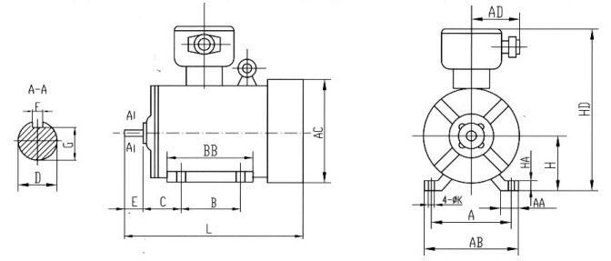 YBX3防爆電機是對YBX3系列高效率隔爆型三相異步電動機的簡稱,是在YB3防爆電機的基礎(chǔ)上進行改進的防爆電機,相比YB3更加高效節(jié)能,能夠取代YB3防爆電機的適用性。效率符合GB18613-2012《中小型三相異步電動機能效限定值及能效等級》中的2級能效,且具有性能優(yōu)良,使用安全可靠,振動、噪聲比同類產(chǎn)品降的特點,符合環(huán)保要求。本系列電動機防爆性能符合GB3836.1-2010《爆炸性環(huán)境第1部分:設(shè)備通用要求》和GB3836.2-2010《爆炸性環(huán)境第2部分:由隔爆外殼“d”保護的設(shè)備》的規(guī)定,制成隔爆型。防爆標志為Ex dⅡA T4 Gb、Ex dⅡB T4 Gb,Ex dⅡC T4 Gb,適用于有爆炸性氣體混合物存在的場所。 Ex dⅡA T4 Gb適用于工廠用IIA類,溫度組別為T1、T2、T3和T4組爆炸性氣體混合物存在的環(huán)境。 Ex dⅡB T4 Gb適用于工廠用IIB類,溫度組別為T1、T2、T3和T4組爆炸性氣體混合物存在的環(huán)境。 Ex d ⅡC T4 Gb 適用于工廠用IIC 類,溫度組別為T1、T2、T3 和T4 組爆炸性氣體混合物存在的環(huán)境。 在YBX3 基本系列電動機基礎(chǔ)上,也可制成YBX3-W 戶外型、YBX3-TH 濕熱帶型、YBX3-THW戶外濕熱帶型、YBX3-TA 干熱帶型、YBX3-TAW 戶外干熱帶型、YBX3-T 熱帶型、YBX3-TW 戶外熱帶型及YBX3-WF1 戶外中等防腐蝕型等氣候環(huán)境條件。