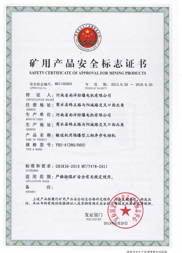 輸送機防爆電機主要用于煤礦井下的皮帶輸送機,刮板輸送機等配套電機,機座由鋼板焊接成形,風罩,接線盒,絕緣結構采取加強措施,防止碎石墜落砸傷電機,已適應煤礦井下的復雜環境。防爆性能符合GB3836.1《爆炸性環境用防爆電氣設備 通用要求》和GB3836.2《爆炸性環境用防爆電氣設備隔爆性電氣設備d》的規定,適用于煤礦井下具有可燃性氣體或煤塵與空氣形成爆炸性氣體環境的場所,防爆標志為ExdI Mb。